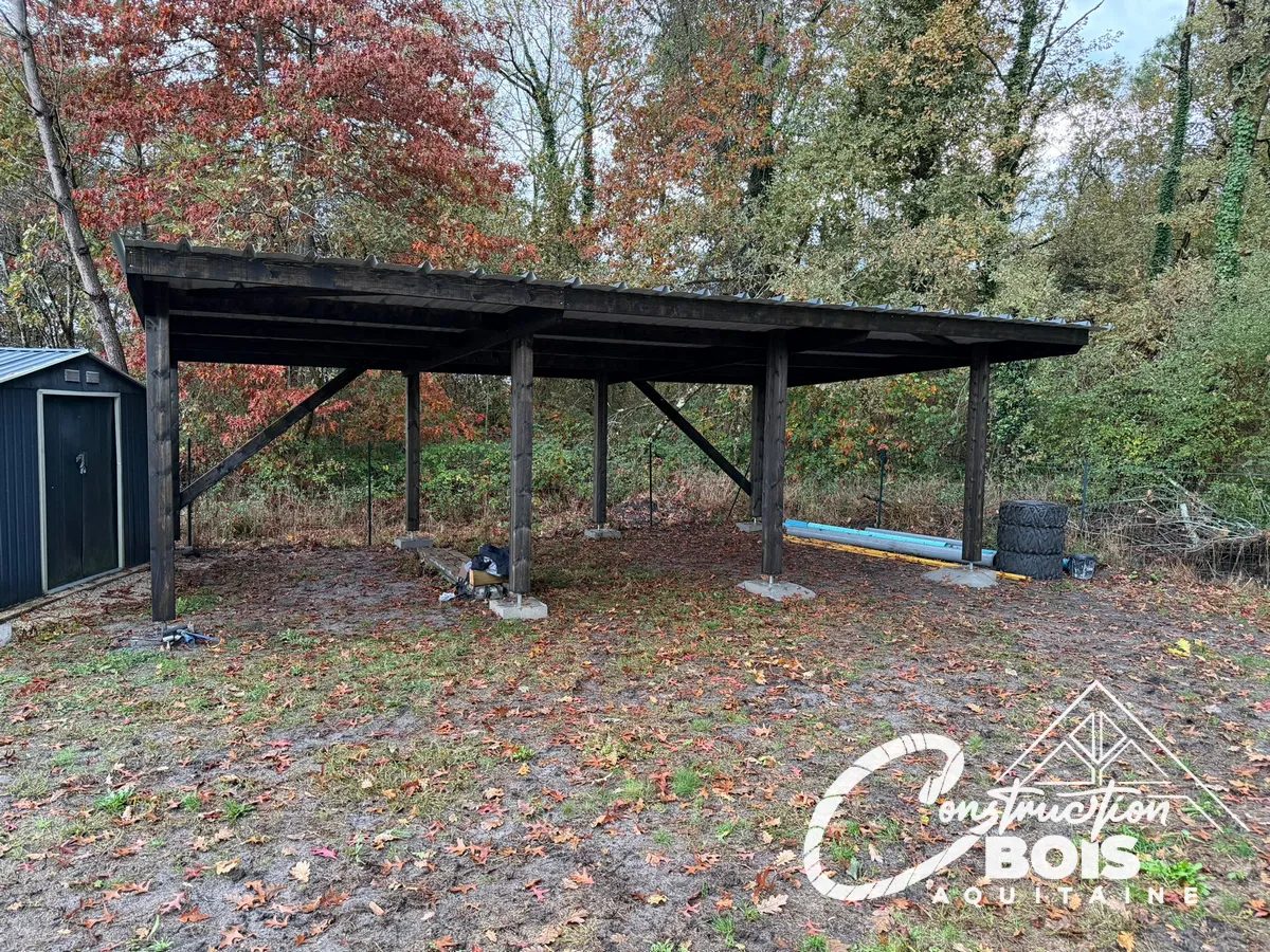 Un carport bois est une structure pratique et esthétique pour protéger vos véhicules des intempéries. Construction Bois Aquitaine réalise des carports bois sur mesure, conçus comme de véritables ouvrages de charpente : stables, durables et bien intégrés à votre habitation.